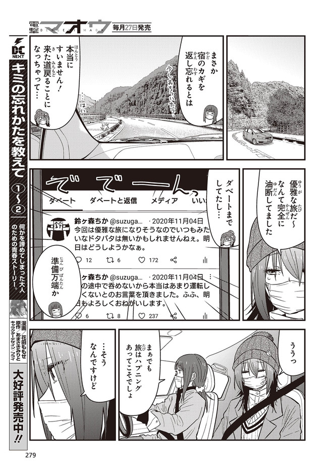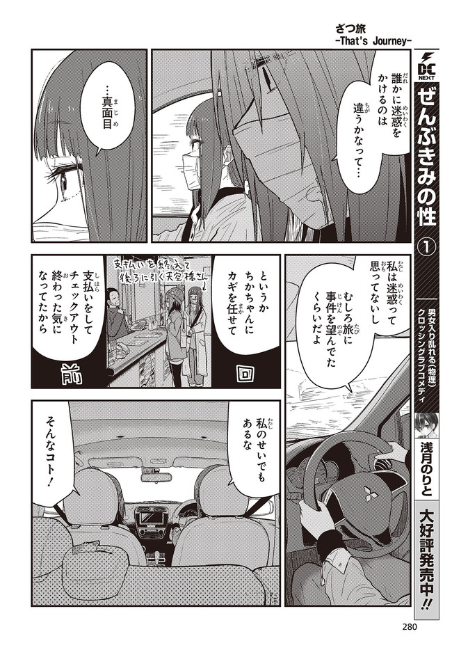 新人漫画家の鈴ヶ森ちかは、ネームを持ち込む度に全ボツを食らっていた。 心が折れかけた彼女だが、唐突に旅に出ることを思い立ち――。 ざつな旅だからこそ癒やされる、究極旅コミック!