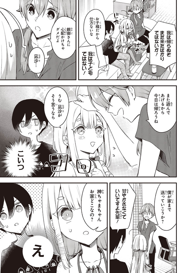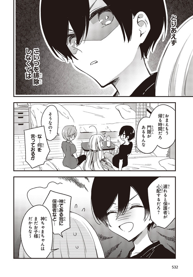 新卒独身男子(22)×次世代の小さな神様たちのほっこり不思議な日常。 就活が難航していた羽鳥梓は、神頼みにある神社に立ち寄る。そこに現れた天照大神と名乗る女性は、梓に任せたい仕事があると話し――!? 新卒独身男子(22)