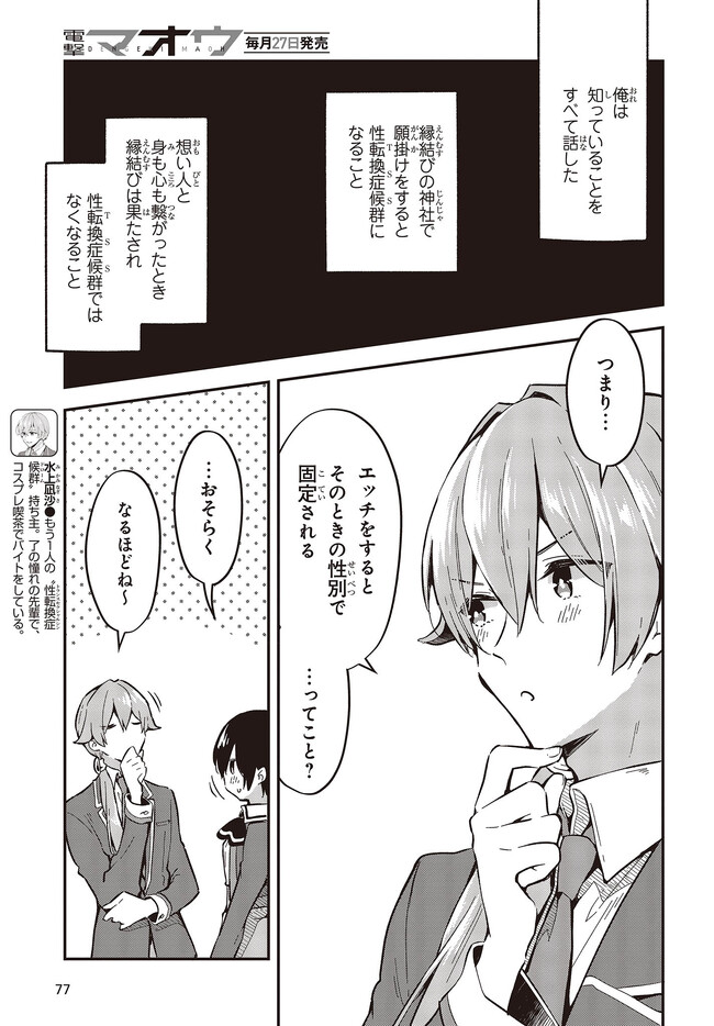 “性転換症候群”という稀な体質の鷺宮了は、高校の学校見学で出会った水上凪沙に憧れ を抱き、凪沙のいる天清学園へ入学することになるが――? 男女入り乱れる(物理)クロッシングラブコメディ!