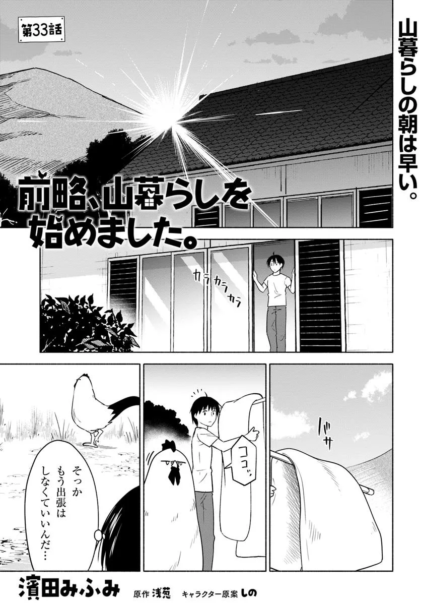 前略、山暮らしを始めました。 第33話 前略、山暮らしを始めました。 投稿者 admin - 9か月 前に 幸せな読書漫画 前略、山暮らしを始めました。 第33話 , いいねと共有ボタンをクリックすることを忘れないでください. Manga 前略、山暮らしを始めました。 常に更新されます 無料コミック Comic Top. 他のマンガの更新を読むことを忘れないでください。 マンガコレクションのリスト 無料コミック Comic Top マンガリストメニューにあります. お友達と共有しましょう! Facebook Twitter Pinterest Whatsapp 前のエピソード すべての章 次のエピソード リスト ページング Loading.. 前のエピソード すべての章 次のエピソード リスト ページング お友達と共有しましょう! Facebook Twitter Pinterest Whatsapp お気に入りに追加に続く 3 人 前略、山暮らしを始めました。 結婚が白紙になったので山を買った。暮らして三日で寂しくなったので縁日でカラーひよこも買った。 三羽のひよこ(ポチ、タマ、ユマ)と一緒に悠々自適な田舎暮らしが始まる……はずが、 ひよこたちは恐竜みたいな尻尾を生やした巨大なニワトリ(?)に成長し、言葉まで喋り始めて!? 濱田みふみ(著者) スローライフペットモフモフモンスター女性向け現代ファンタジー田舎暮らし