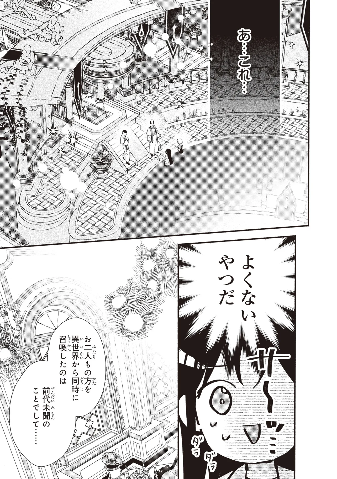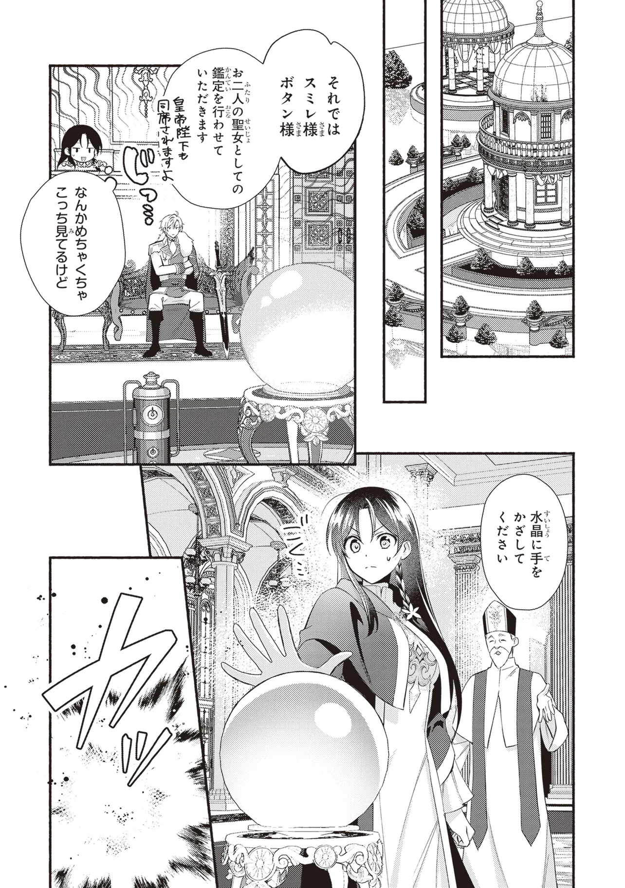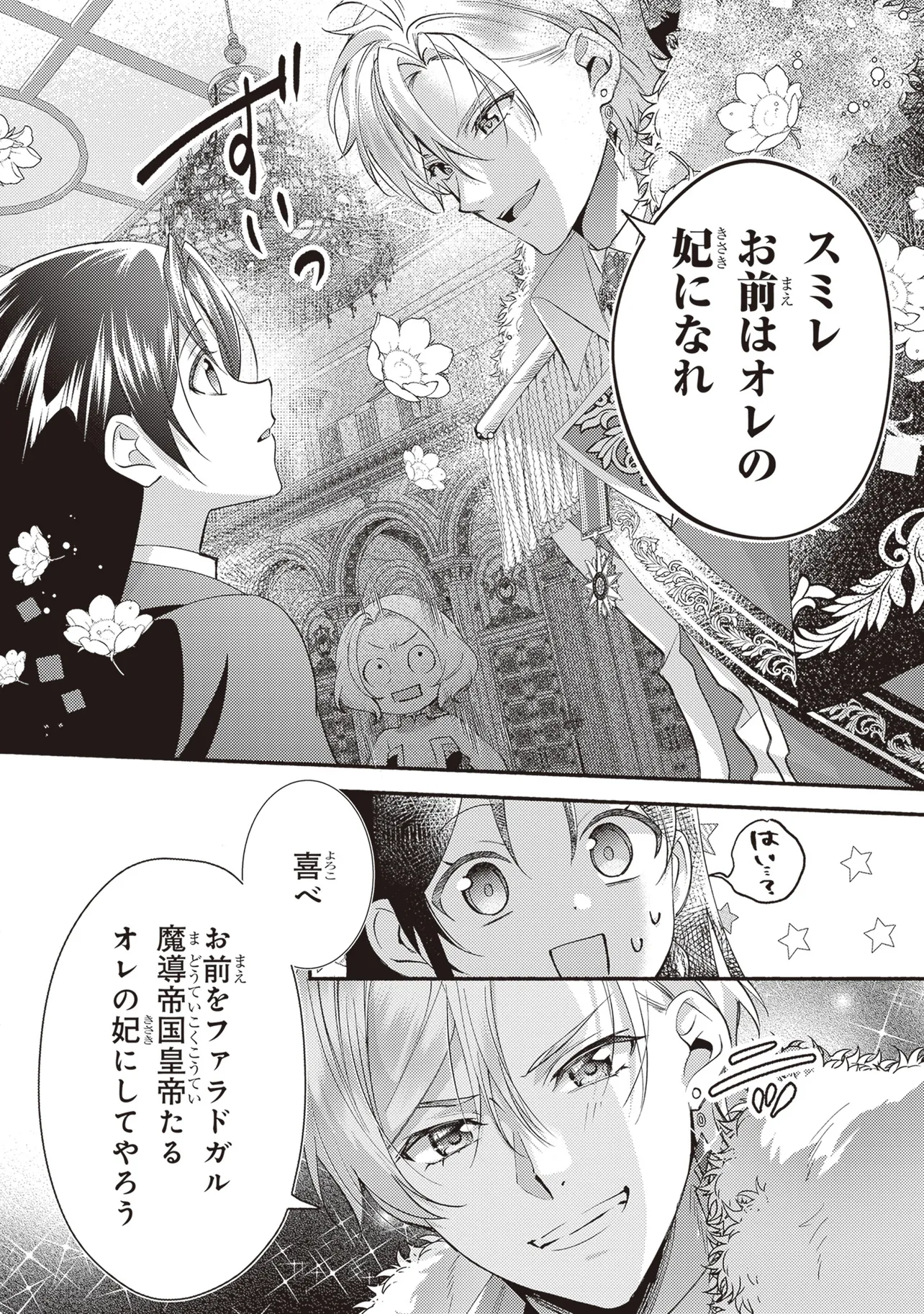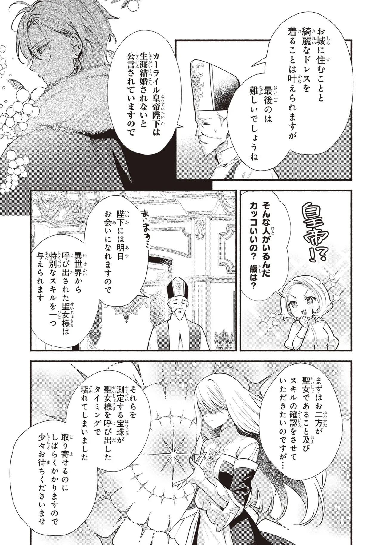 「喜べ、お前を皇帝たるオレの妃にしてやろう!」両親を早くに亡くした会社員・稲妻菫は、従妹一家に引き取られ虐げられる生活を送っていた。ところがある日、異世界に従妹の小坂牡丹とともに召喚され、二人とも救国の聖女と伝えられる。さらに求婚してきた皇帝のカーライルと菫の間には前世からの特別なつながりがあるようで―――。『悪役令嬢は溺愛ルートに入りました!?』『転生した大聖女は、聖女であることをひた隠す』の十夜の完全オリジナル脚本を超美麗絵師・村上ゆいちが描く!